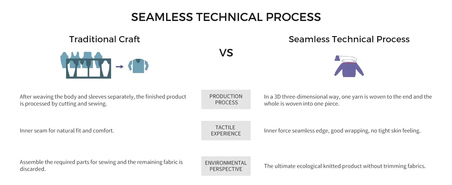 Gone are the bulky and annoying stitches at the shoulders, sides, and underarms, as well as any seams that may interfere with the natural elasticity of knits. This means you can move and stretch more freely without feeling restricted or uncomfortable.